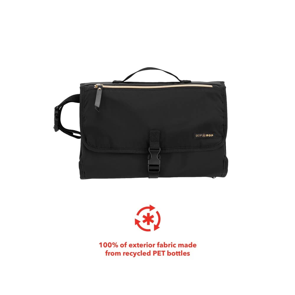 An eco-friendly take on our popular changing station, the Envi Luxe Pronto® features lightweight— yet sturdy—exterior fabric made from 100% recycled PET bottles to help protect our planet by reducing waste. A must-have changing tool for Earth-conscious parents, the ultra-convenient clutch has a wipe-clean zip-off changing pad and translucent wipes case. A large mesh pocket holds up to four diapers plus creams and other essentials, while the front-zip pocket is the perfect spot for keys, cell phone and other personal items